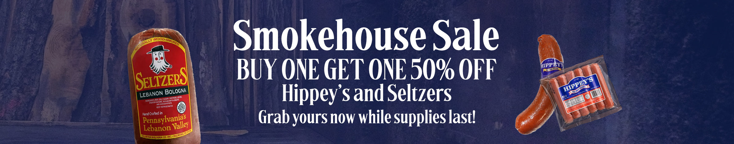 Buy One Get One 50% OFF • Hippey's and Seltzer's Smokehouse Meats • Grab yours while supplies last!
