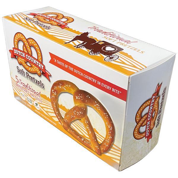 Dutch Country Soft Pretzel Company was established in 1993 in the heart of Lancaster. Using wholesome, all-natural ingredients they twist these gems into 2.5 oz. pretzels. Each box contains 5 pretzels with the salt on the side and heating instructions. "It's a taste of the Dutch Country in every bite."