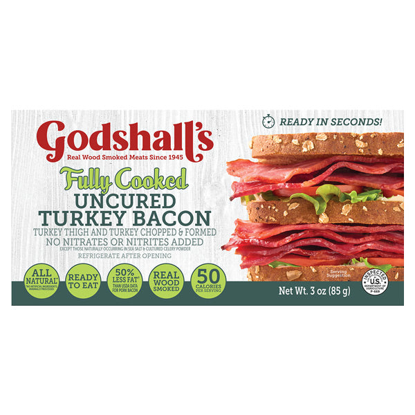 GODSHALL'S FULLY COOKED TURKEY BACON, 3 OZ.