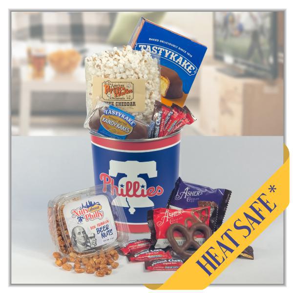 Cheering on the Fightin’ Phils works up an appetite—so treat your favorite fan to a Phillies Gift Tin packed with classic Philly snacks! This officially licensed 1-gallon tin with a lid is a home run, filled with crowd-pleasing, heat-safe treats:g:
