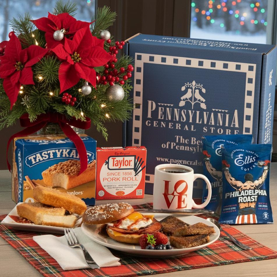 Start your day the Philadelphia way with all the hometown classics packed into one delicious gift box. Enjoy the savory sizzle of Dietz & Watson Scrapple and Taylor Pork Roll, the sweet crumbly goodness of Tastykake’s iconic Koffee Kake, and Ellis’ bold Philadelphia Roast Coffee. And no Philly breakfast would be complete without a Soft Pretzel from the legendary Philadelphia Pretzel Factory. Let the coffee brew and the memories flow—this is comfort food, Philly style.