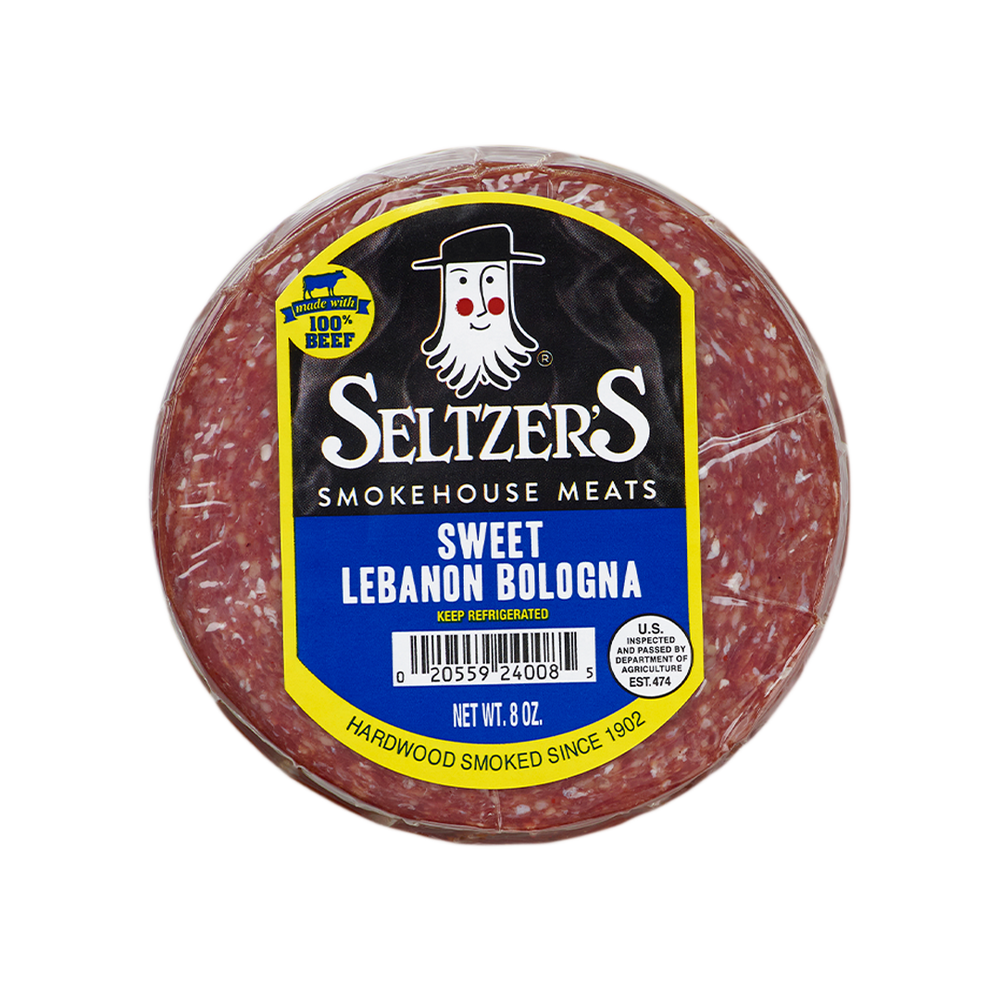 Based in the rolling hills of Pennsylvania Dutch country, Seltzer's Lebanon Bologna is the leading producer of Lebanon Bologna. One of the secrets to their success is their old-fashioned process of smoking their bologna over hand-tended fires using 100% beef and a unique family recipe from 1902. Seltzer's Sweet Lebanon Bologna come along a few years after the original recipe and is a preferred taste of kids and adults alike. Sweet Lebanon Bologna features a blend of premium spices, lean beef and white sugar cured in our wooden smokehouses for three days. Sliced thick and grilled with melted cheese on top is just one of the countless ways people enjoy our Sweet Lebanon Bologna. This is prepacked and pre-sliced. Net Wt 12 oz.